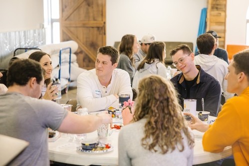 Social nights give us the place to have fun, laugh, & get to know one another, doing things like playing trivia or going to a hockey game.